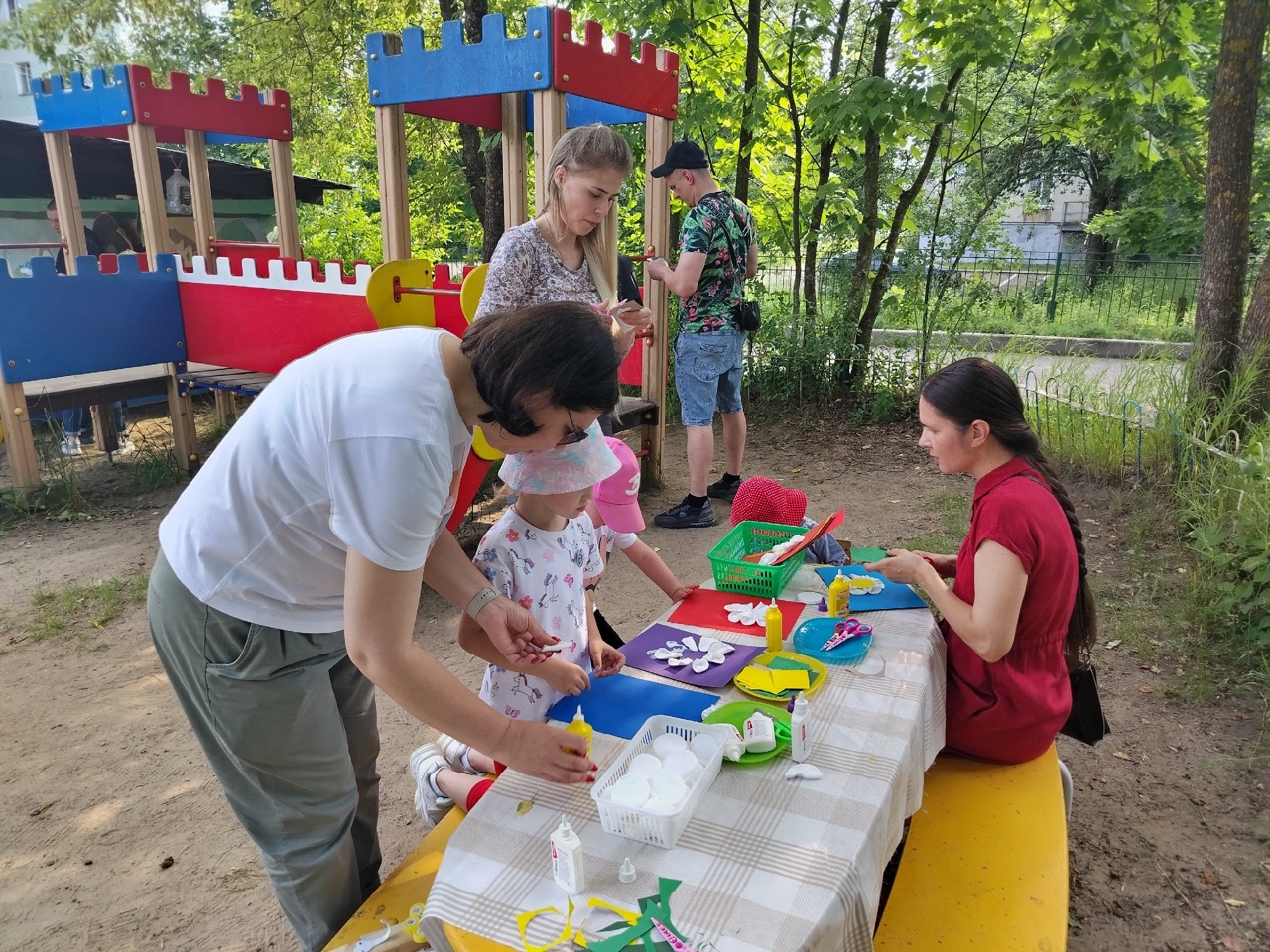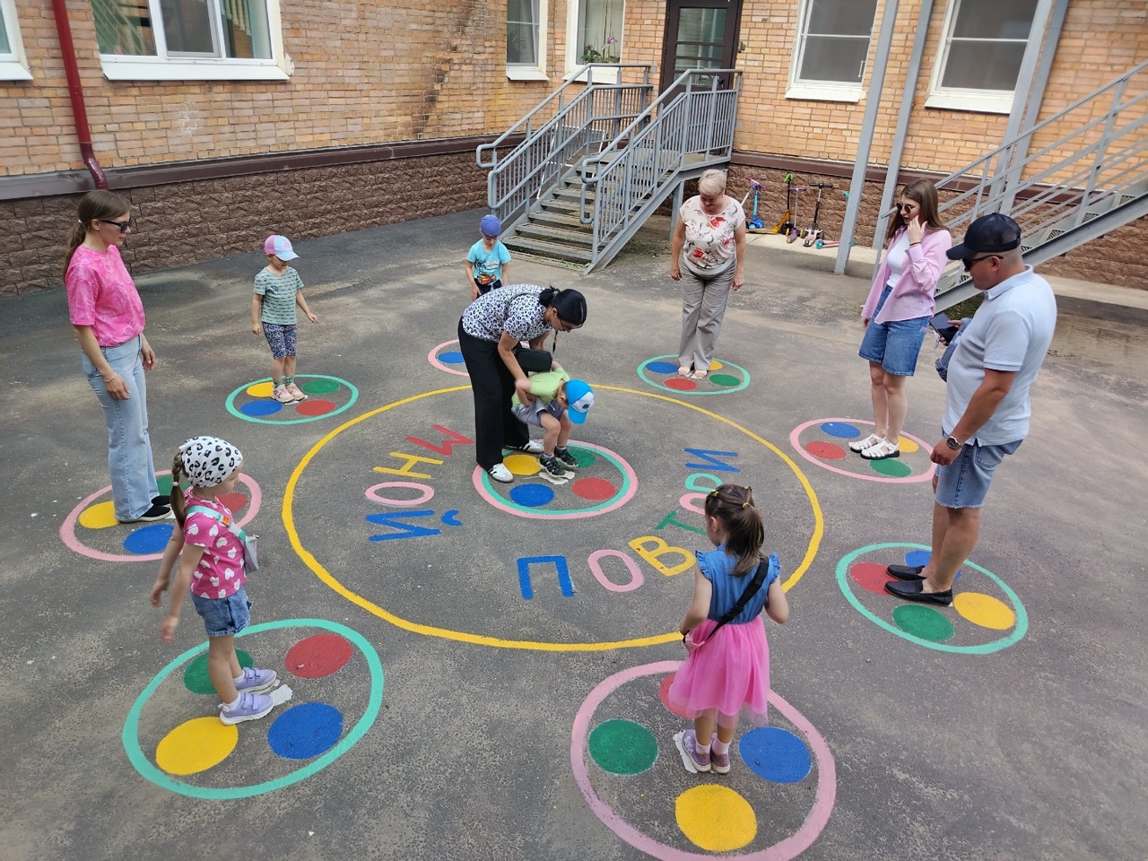 И семьи отправились в увлекательное путешествие, которое спланировали для себя сами, учитывая возраст и желание детей. На разных станциях гостей ожидала масса приключений. На станции «Мы-туристы» они познакомились со снаряжением и элементами настоящего туристического похода, насладились вкусный чае с мятой и попробовали настоящую гречневую кашу. На станции «Игры нашего двора» поиграли в хорошо знакомые игры на асфальте (такие как «классики» и "твистер", а ещё узнали новые). На «Творческой станции» всей семьей смогли заняться творчеством – рисовали на плёнке гуашью, лепили и клеили. На станции «Семейная игротека» играли в настольные игры: шашки, шахматы, лото, домино, пазлы, доббль. На «Музыкальной станции» дружно пели известные детские песни. На станции «Папина мастерская» папы учили ребят пилить доски, забивать гвозди и готовить полезные поделки для дома. А на «Спортивной станции» предлагалось размяться, играя в подвижные игры всей семьёй.